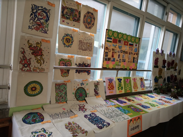 Anyway, hasil karya budak-budak ni semuanya telah dipamerkan semasa School Art Exhibition which is an annual event, serentak dengan Talent Show. So rasa bangga & happy gak lah sebab bukan setakat budak-budak ni berjaya buat hasil karya yang sebenarnya agak leceh gak nak buat especially for lower grades, tapi yang paling best sebab my final goal for my project plan pun dah terlaksana sekali which was nak buat pameran. Alhamdulillah. BTW untuk kelas ni takde slides ye. Gambar-gambar motif yang abam pakai tu boleh download kt bawah. So teruskan layan pic exhibition dibawah k :)